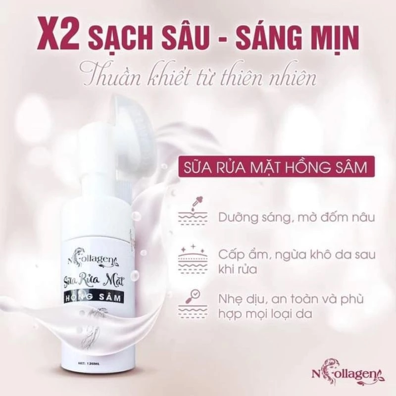 Sữa rửa mặt hồng sâm NCollagen với chiết suất Hồng Sâm kết hợp cùng vitamin E, C giúp lấy đi mọi bụi bẩn tận sâu lỗ chân lông mà không gây cảm giác khô da, ngược lại bạn sẽ thấy da mềm mịn, nhẹ nhàng. Giúp dưỡng trắng và thu nhỏ chân lông, ngăn ngừa bài tiết bã nhờn, ngừa mụn. Mờ thâm, nám, tàn nhan, tăng độ đàn hồi cho da. Dùng cho cả Nam và Nữ, phù hợp với mọi loại da kể cả da nhạy cảm.